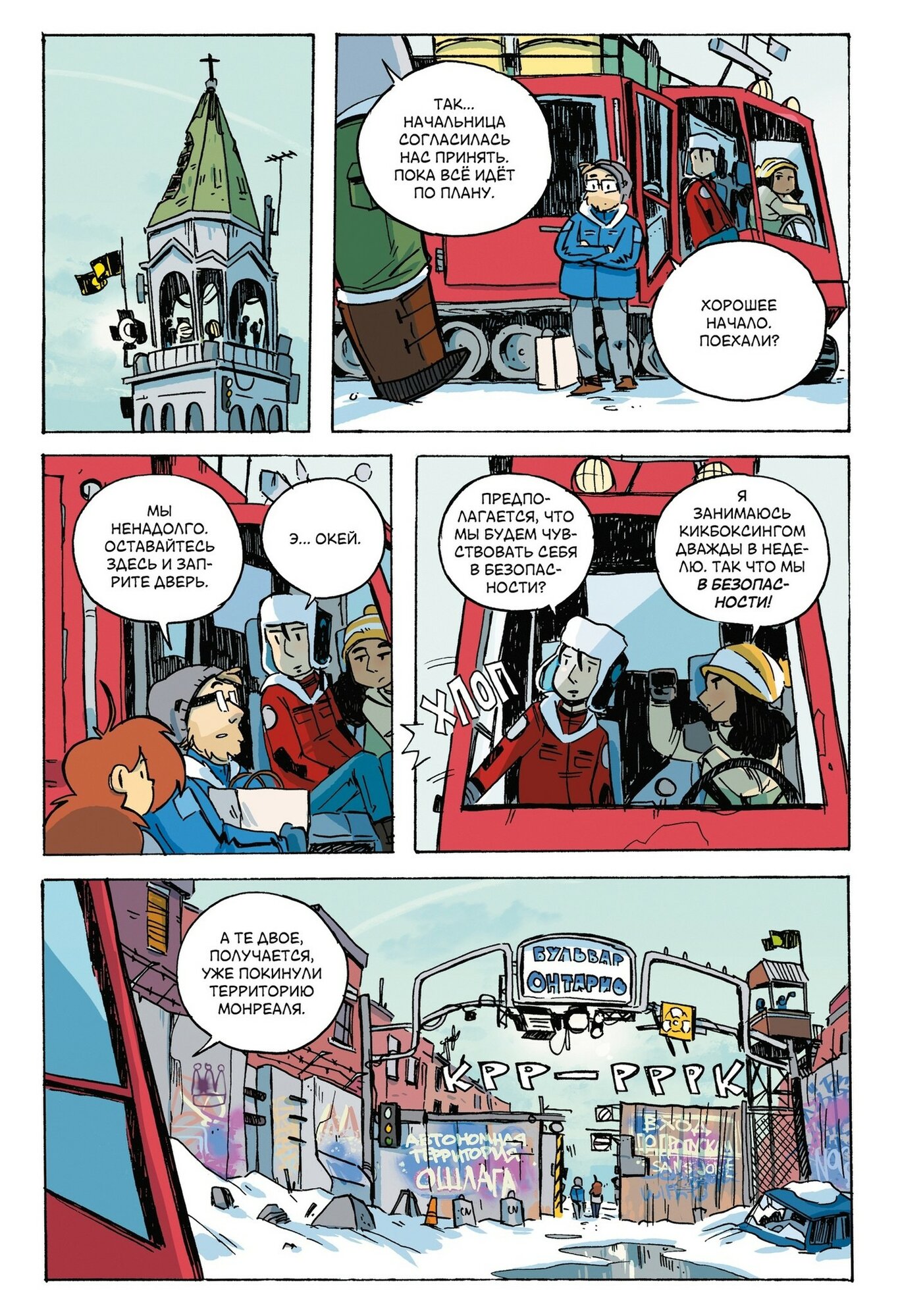За сценарий и рисунок отвечает Caroline Breault. Не стоит и пытаться переводить, эта прекрасная канадская художница предпочитает "Cab". Да, вот так просто, Кэб. Вас ждут веселые и правдоподобные приключения в антураже ядерной зимы, так что пристегивайтесь, заводите снегоходы и погнали!