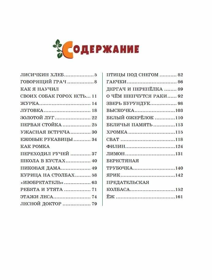 В сборник вошло 33 наиболее известных рассказа: «Лисичкин хлеб», «Журка», «Берестяная трубочка», «Золотой луг» и многие другие.