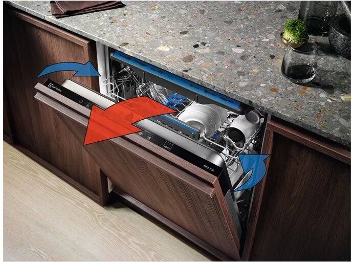 В посудомоечной машине Электролюкс установлены специальные индикаторы наличия ополаскивателя и соли, которые загораются, когда запас средств в резервуарах подходит к концу. Дело в том, что вода, которая поступает в машину из водопровода, имеет высокую степень жесткости, то есть содержит большое количество примесей. Последствия использования такой воды вы можете увидеть невооруженным глазом — накипь на посуде, известковые отложения на кранах и т. д. Технология FlexiLift помогает удобно загружать и вынимать посуду из машины. Даже когда корзина заполнена более крупными предметами, данная система помогает вам легко получить доступ к посуде, отрегулировав высоту.