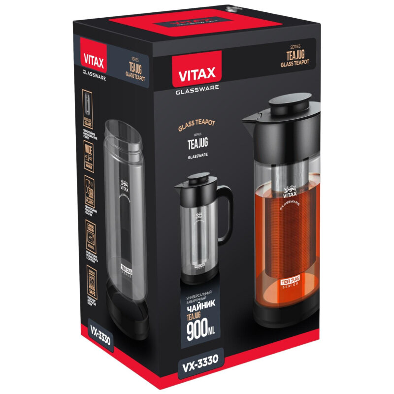 Чайник заварочный 900 мл Vitax Teajug 3-в-1 чёрный VX-3330