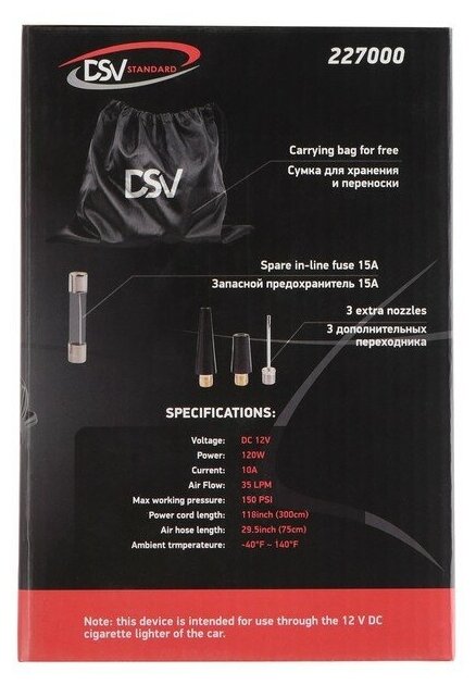На сегодняшний день товар «компрессор автомобильный DSV 12В 35л/мин (227000)» можно купить с кешбеком в 1 магазине: ВсеИнструменты