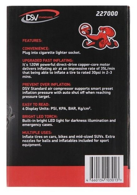 - Компрессор DSV Smart двухцилиндровый 75 л/мин 12V с LED фонарем и цифровым манометром