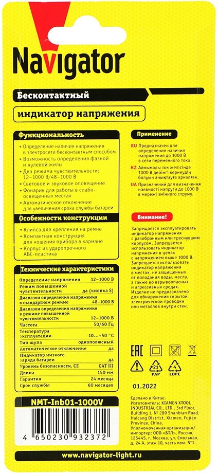 индикатор напряжения NAVIGATOR бесконтактный 1000В диэлектрический (93237)