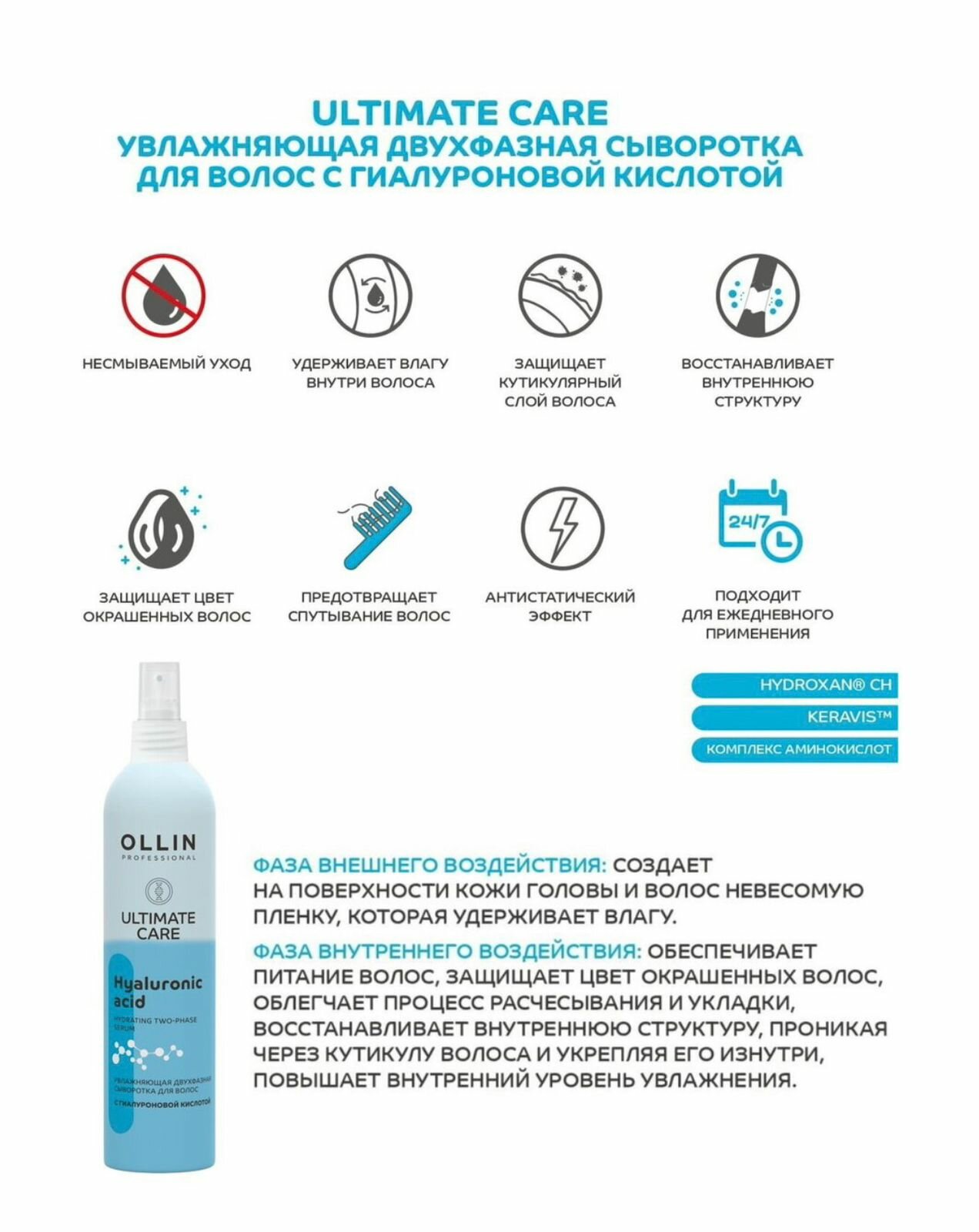 Увлажняющая двухфазная сыворотка с гиалуроновой кислотой 250 мл OLLIN Professional (ЭХ99989437412)