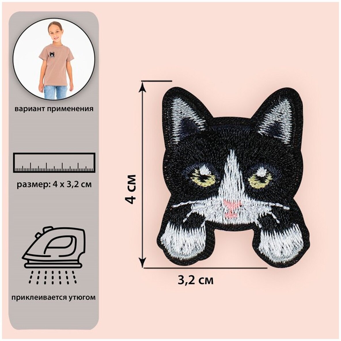 7291877 Термоаппликация 'Котенок с лапками' 4*32 см чёрный Арт Узор