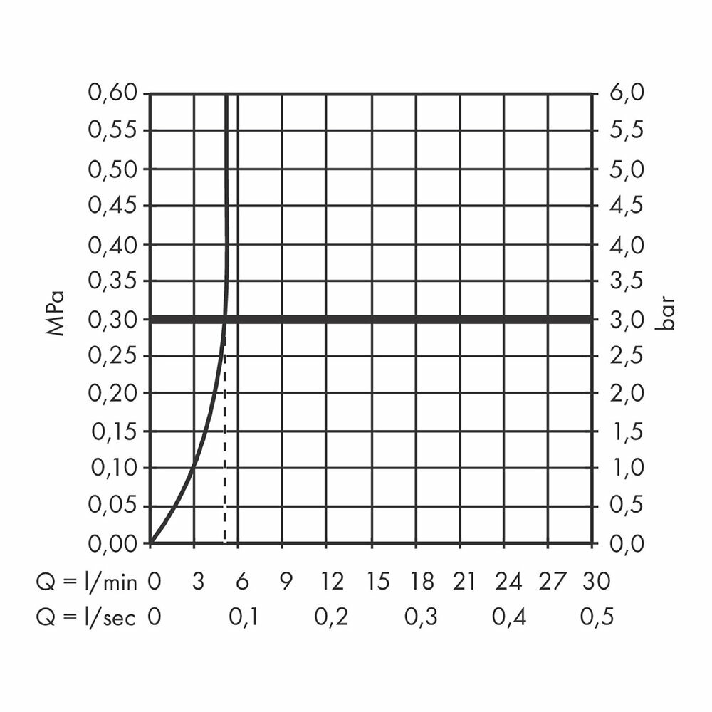 - Максимальный расход воды 5 л/мин при давлении 3 бара
