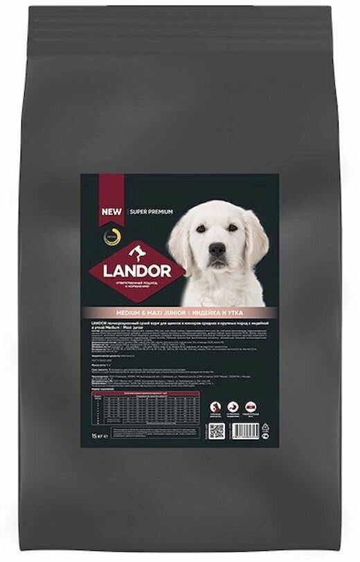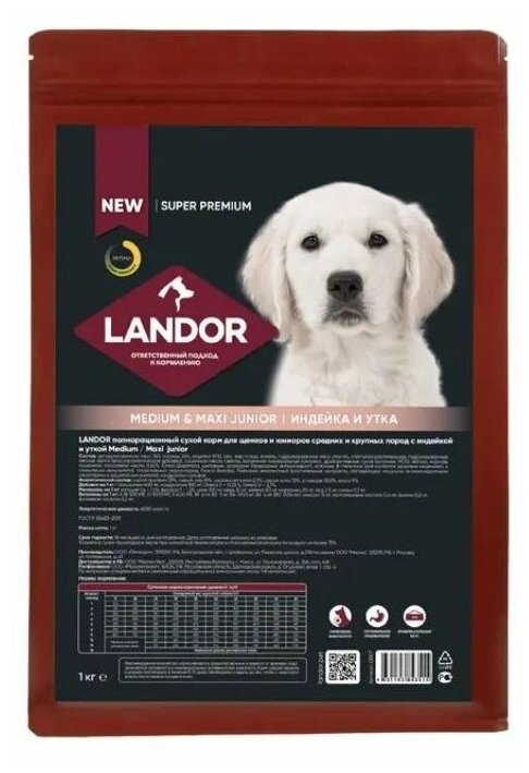 Landor полнорационный сухой корм для щенков и юниоров средних и крупных пород (Индейка и утка 1 кг.)
