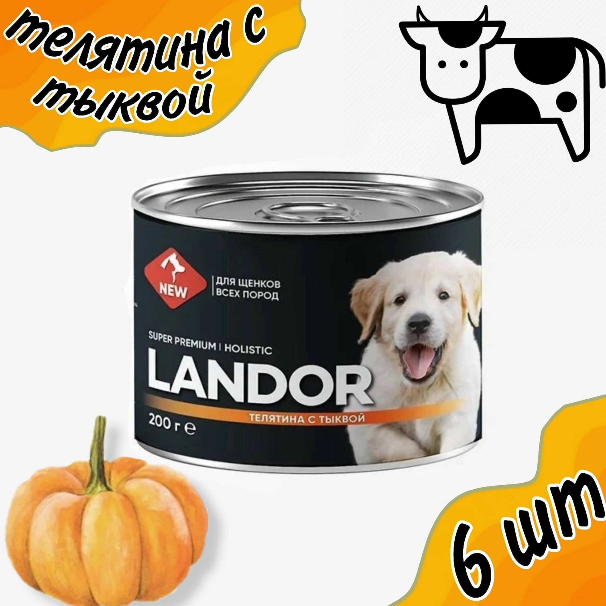 Landor полнорационный консервированный влажный корм для щенков всех пород (Телятина с тыквой 200 г.)