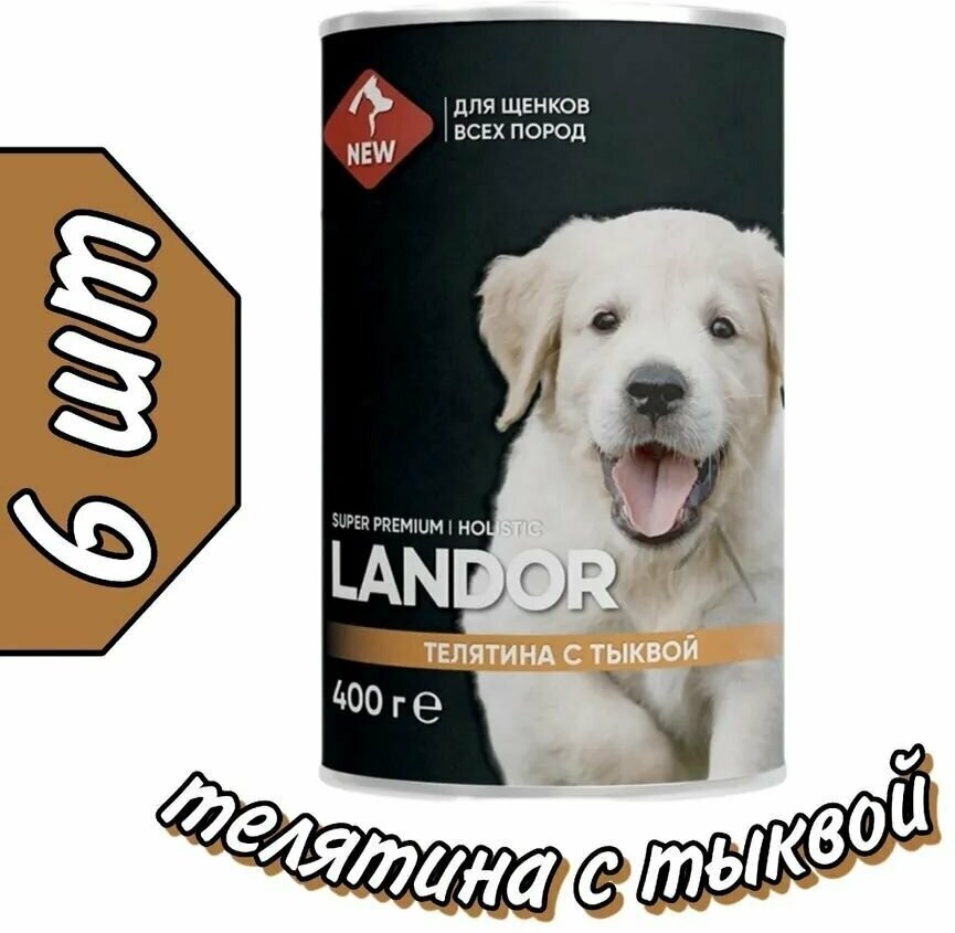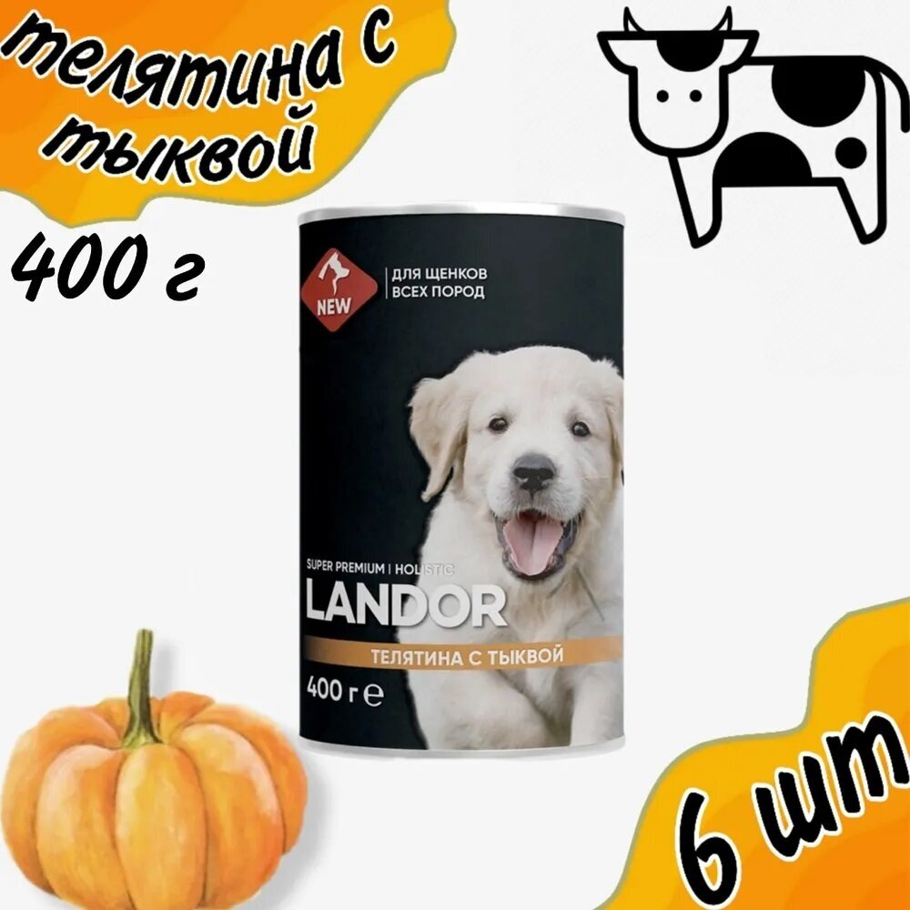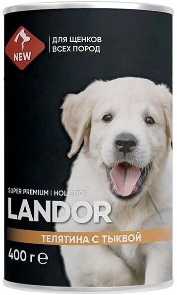 Landor полнорационный консервированный влажный корм для щенков всех пород (Телятина с тыквой 400 г.)