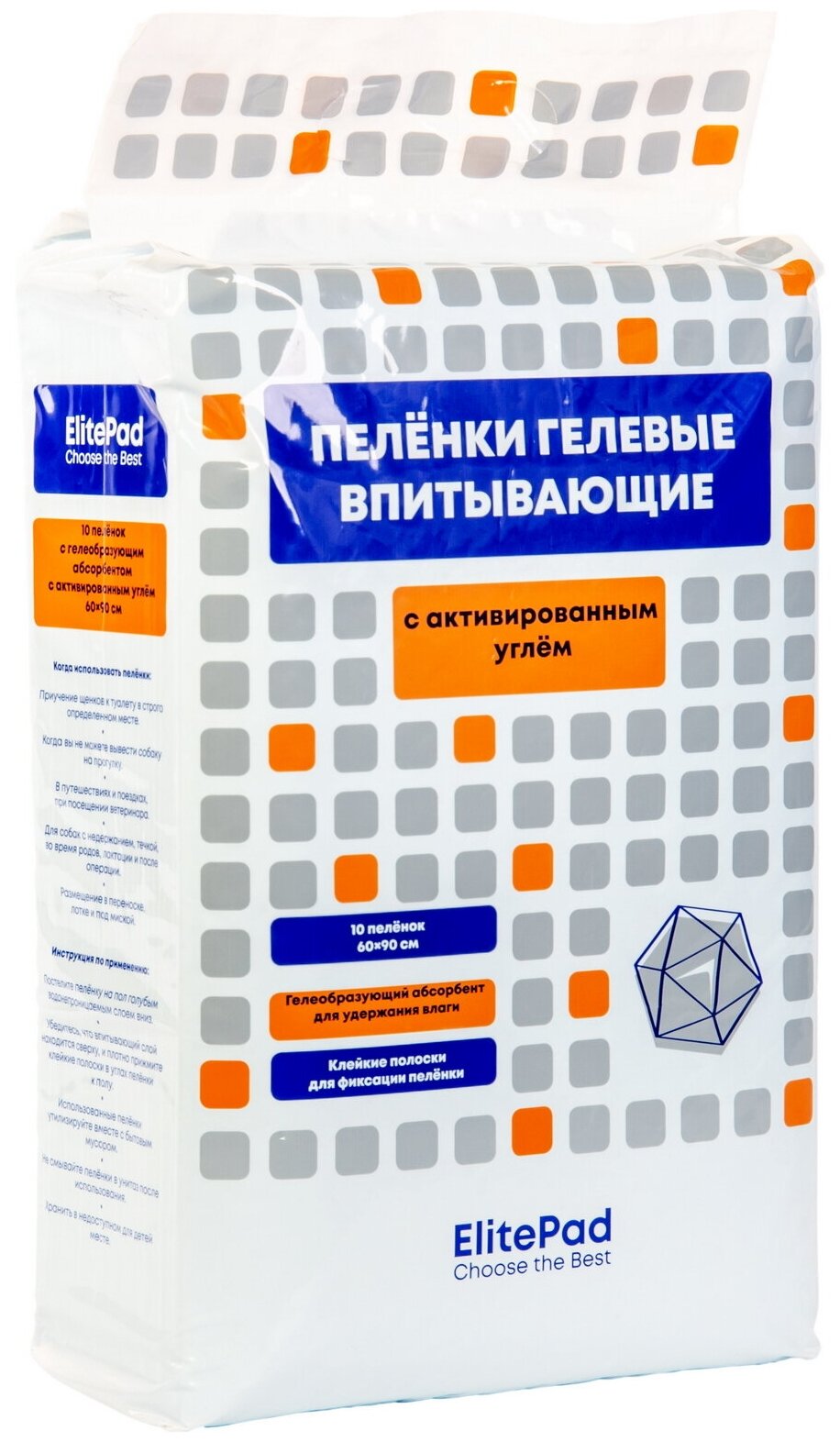 ELITEPAD Пелёнки впитывающие гелевые с углём "Active Carbon" 60х90см10шт/уп (2636/EP)