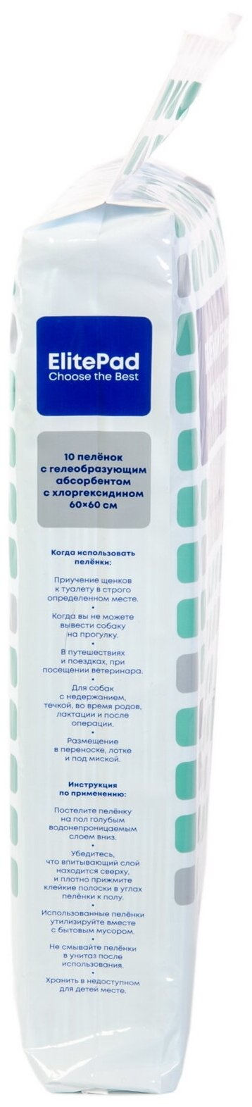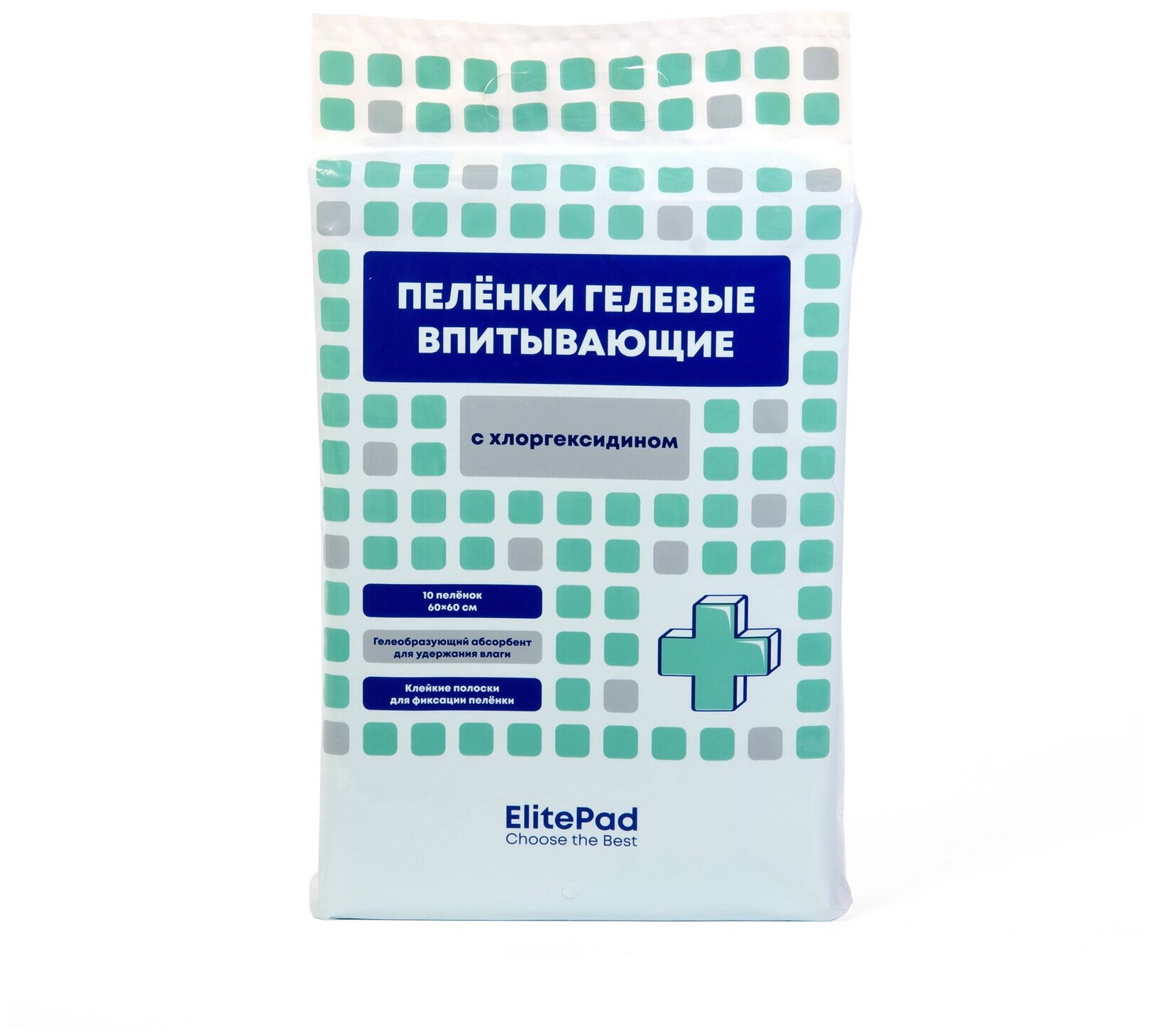 ELITEPAD Пелёнки впитывающие гелевые с хлоргексидином "Chlorhexidine" 60х60см10шт/уп (2605/EP)