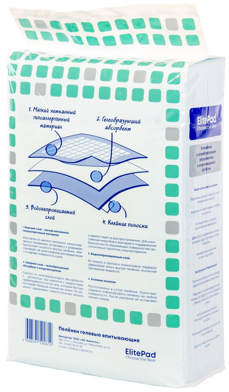ELITEPAD Пелёнки впитывающие гелевые с хлоргексидином "Chlorhexidine" 60х90см10шт/уп (2612/EP)