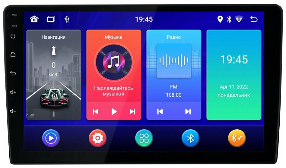 Размер лицевой панели 147х252 мм OC Android 10 Дисплей 10" дюймов 2,5D-стекло Разрешение 1280?720 px Процессор AC8227L Cortex-A7 Quad core 1.3 GHz Оперативная память 2 ГБ DDR3 Внутренняя память 32 ГБ Встроенный GPS-модуль, с внешней антенной Два порта USB Встроенный WI-FI-модуль Bluetooth-модуль с профилем потокового аудио A2DP Поддержка штатных аналоговых кнопок руля Видеоформаты: MKV, MOV, AVI, Mp4 Аудиоформаты: MP3, FLAC, WMA, AAC Мощность 4?50 Вт Возможность установки навигационного ПО с информацией о пробках и дорожных событиях (при подключении к интернету) Возможность подключения аналоговой фронтальной камеры Возможность подключения аналоговой или цифровой камеры заднего вида (AHD) Настройка цвета подсветки кнопок