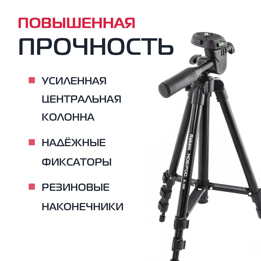 Штатив Rekam Mobipod E-100 черный, алюминий, напольный, высота съемки 350-1000мм, секций штанги: 4, головка: 3D, вес 379гр