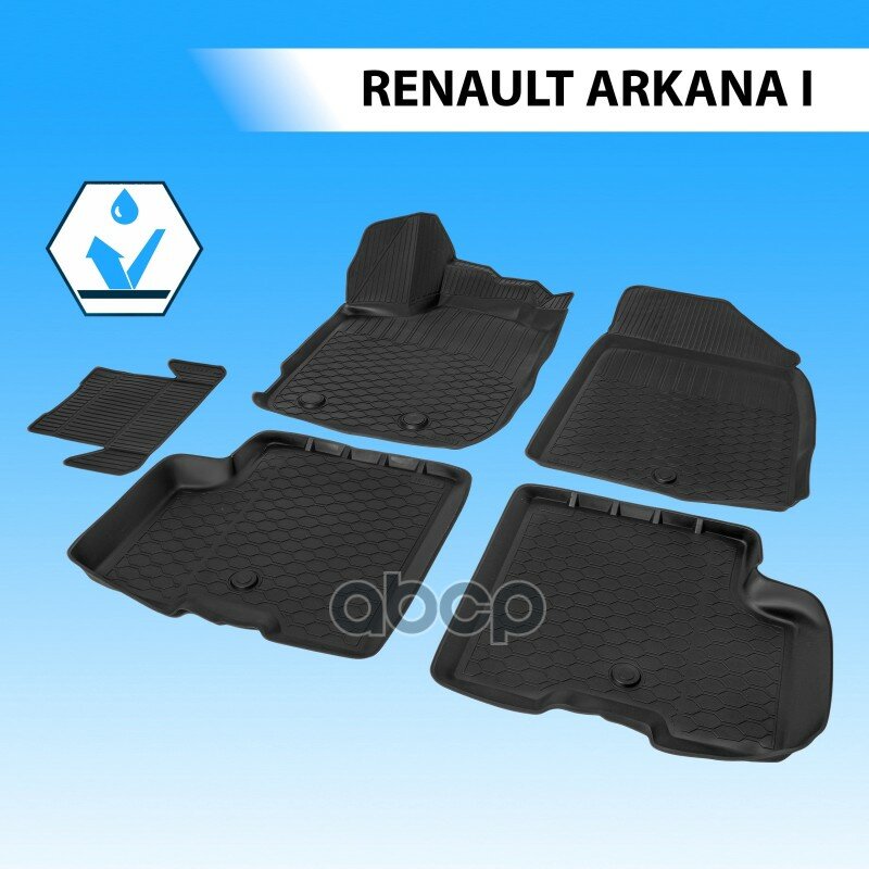 Коврики в салон автомобиля Rival для Renault Arkana 2019-н.в., полиуретан, с крепежом, 5 шт., 14709001.