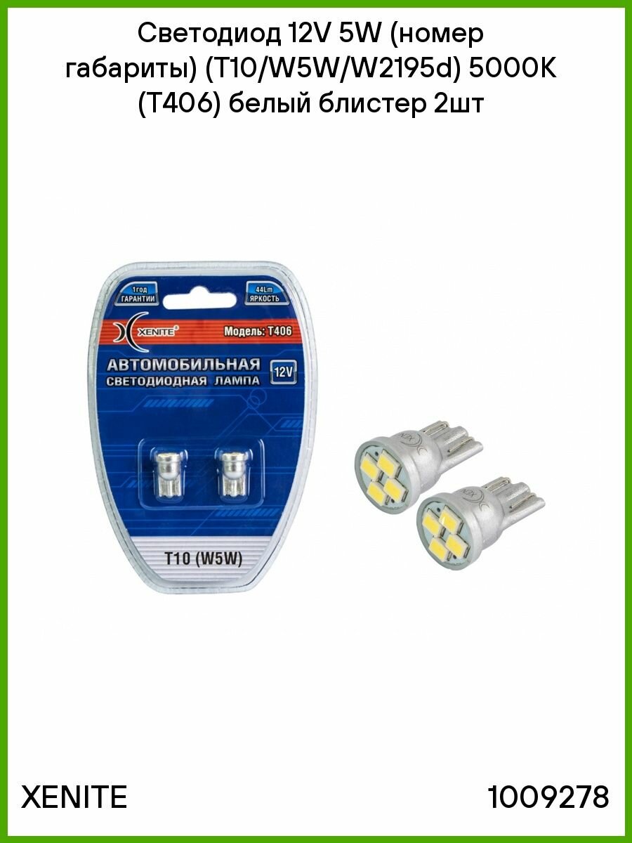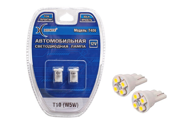 Автолампа XENITE Лампа XENITE T406 - W2,1 x 9,5d-1.2 Вт-5000К, 2 шт.