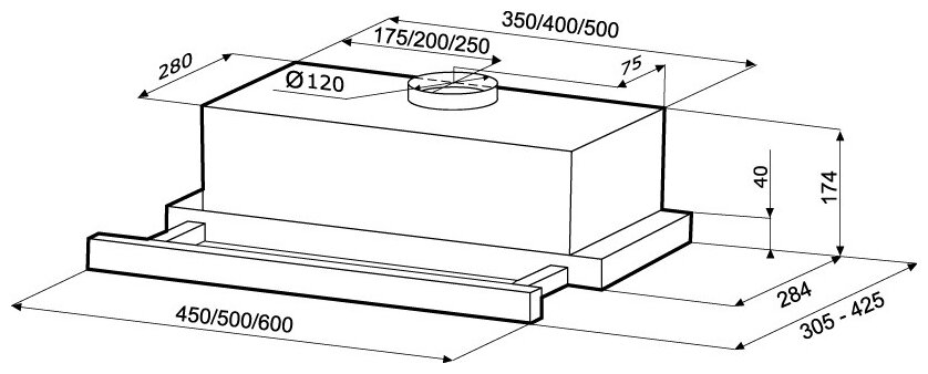 | Преимущества модели | Европейская бесшовная сборка. Управление с функцией «Slide Stop» - вытяжка запоминает последнюю выбранную скорость. Удобный вырез в планке под руку. |