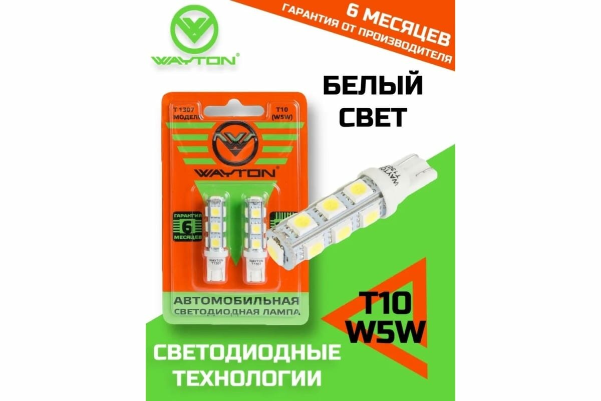 Модель: Лампа Wayton T1307 - W5W-5 Вт, 2 шт.
