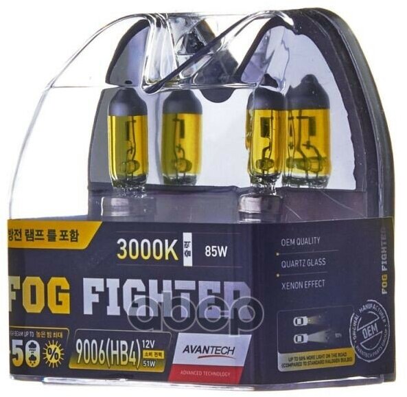 Автолампа AVANTECH Лампа AVANTECH Fog Fighter - HB4-60/55 Вт-3000К, 2 шт.