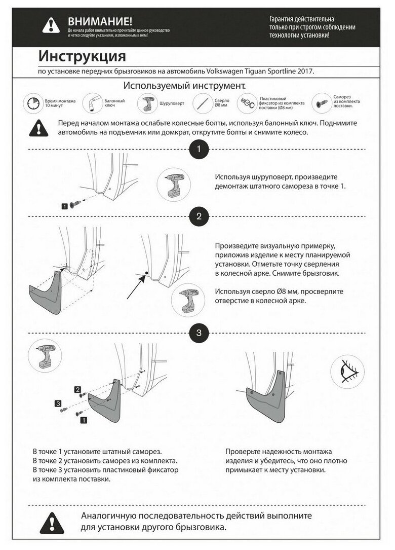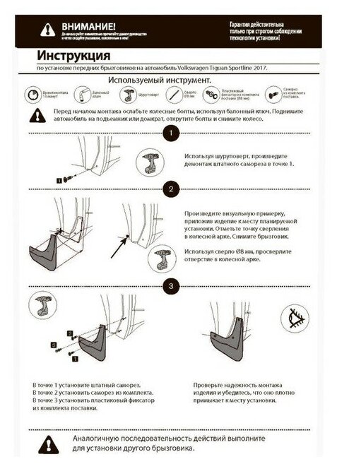 | Комплектация | 2 брызговика, крепеж, инструкция, упаковка |