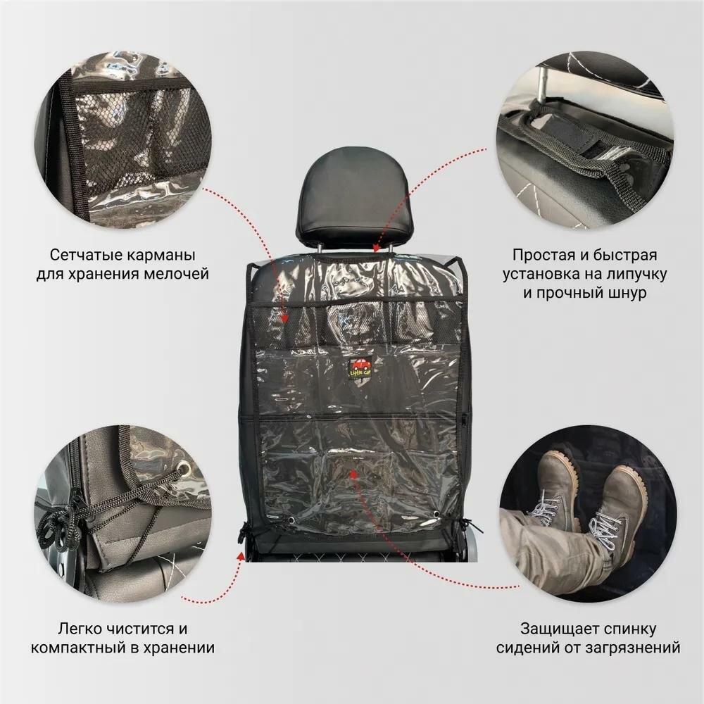 Модель: Накидка-органайзер защитная на спинку сидения Little Car прозрачная, черный кант 129602