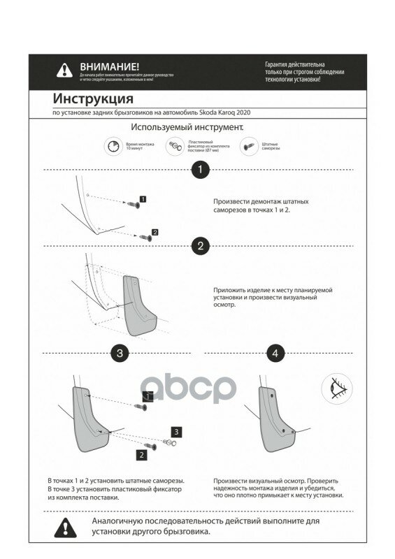 | Комплектация | 2 брызговика, крепеж, инструкция, упаковка |