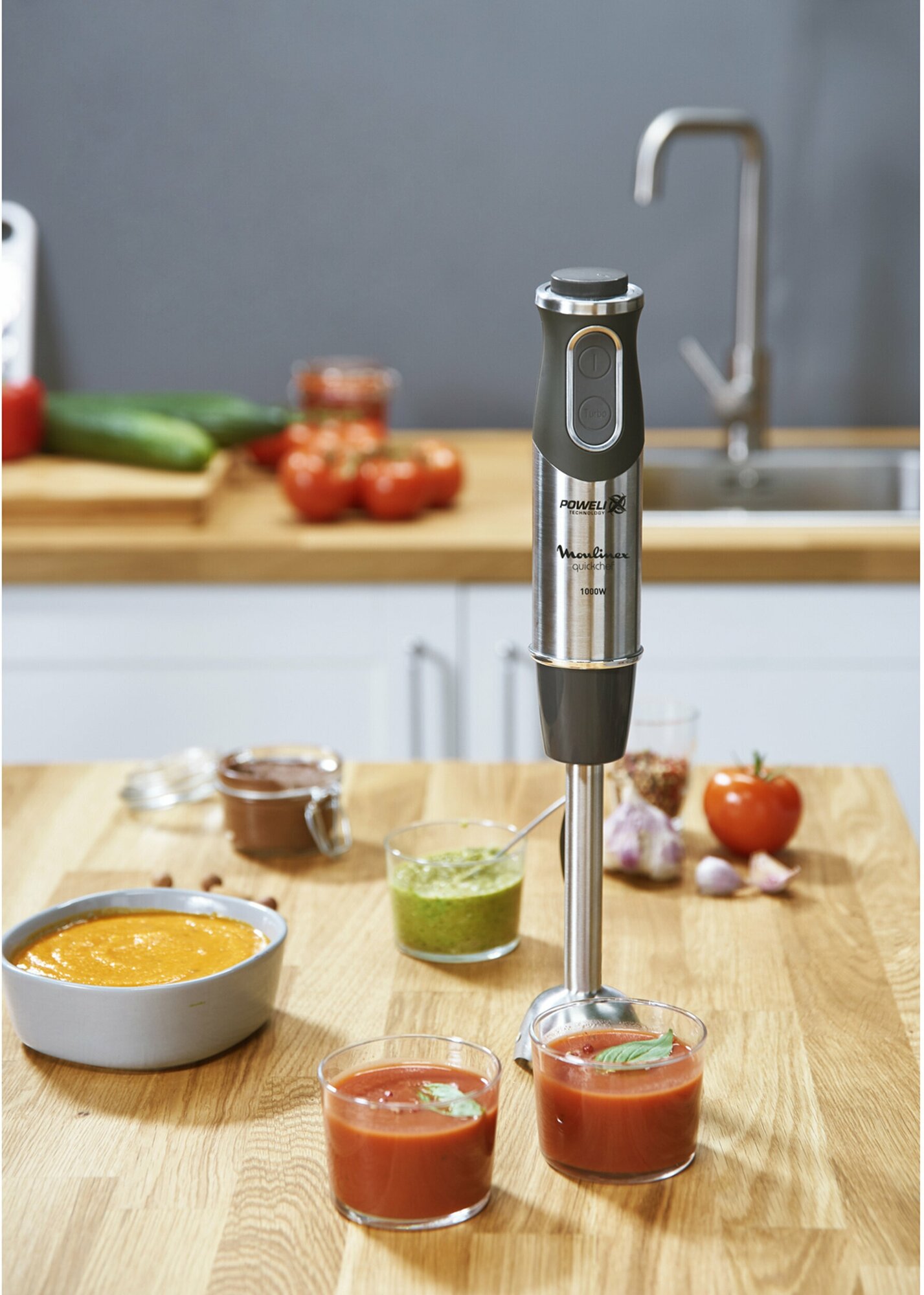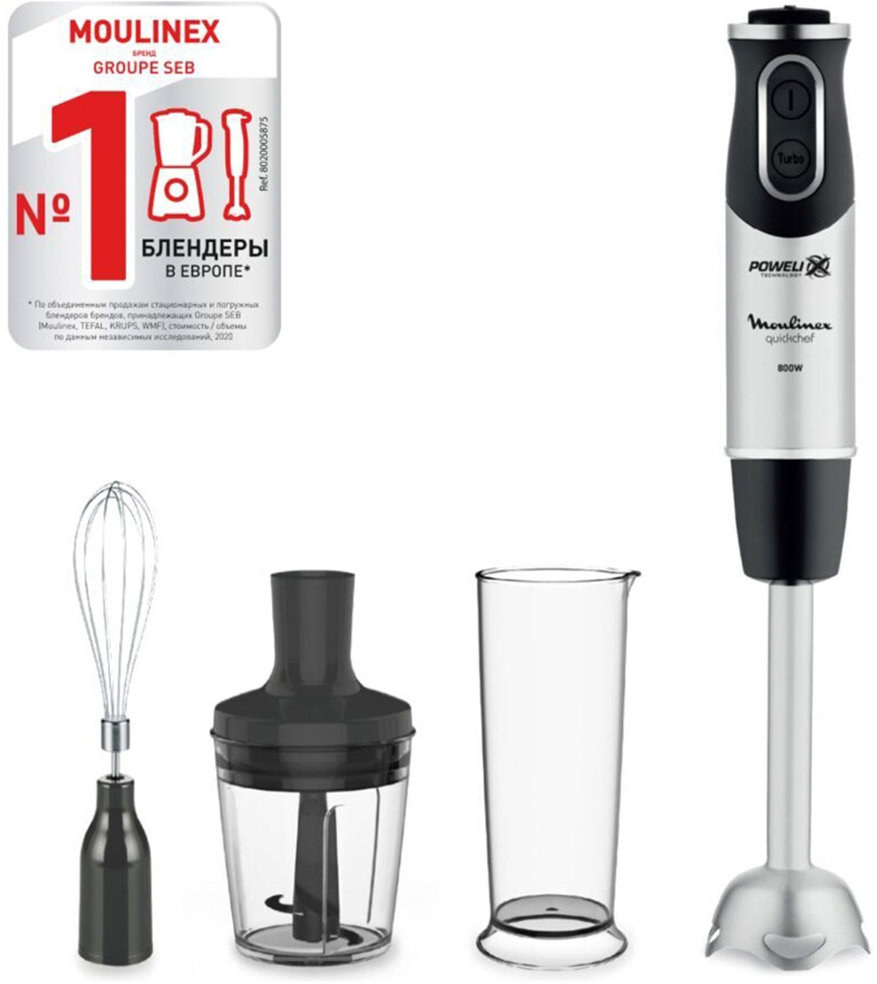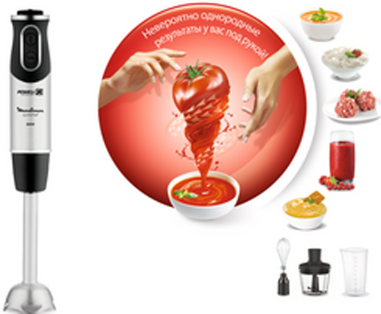 Погружной блендер Moulinex сочетает в себе удобный эргономичный дизайн, высокую мощность и богатую комплектацию для любых блюд. Прибор оснащен мощным мотором и турбо режимом, а также оборудован острыми ножами из высококачественной нержавеющей стали, благодаря чему позволяет быстро и эффективно измельчать и смешивать различные ингредиенты. Эргономичная ручка блендера с мягким противоскользящим покрытием и большими удобными кнопками гарантирует максимальный комфорт в использовании.