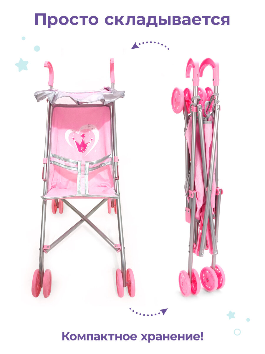Коляска для куклы Mary Poppins Корона трость с тентом которую девочка сможет использовать как на улице, так и дома. Коляска является главным атрибутом в любой прогулке. Многие девочки хотят для своих кукол самые современные коляски, где все просто и понятно. Данная коляска предназначена именно для таких девочек. Особенности: Коляска складывается в форме трости и в собранном состоянии занимает мало места. Она достаточно легкая на вес, поэтому пользоваться ею могут даже самые маленькие девочки. Приятная расцветка, а также наличие ремней безопасности сделают процесс игры гораздо веселее и реалистичнее.
