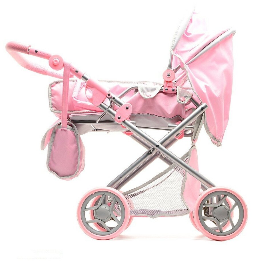 Коляска-трансформер Корона предназначена для сюжетно-ролевой игры в дочки-матери и подойдет для куклы с ростом до 40 см. Люлька-переноска оборудована текстильными ручками, она снимается с основы коляски и в ней можно переносить куклу отдельно. Без люльки коляска превращается в прогулочную, для этого нужно привести спинку в вертикальное положение, после этого куклу в коляску можно усадить. У коляски регулируется угол наклона ручки, подножка - в прогулочной модификации, положение подголовника и капюшон. В комплекте с коляской имеется удобная сумочка для кукольных вещей. В корзинку-поддон можно положить любимые игрушки. Коляска легко складывается. Регулируемая ручка, регулируемая подножка, регулируемое положение подголовника, регулируемый капюшон, съемная люлька-переноска, размер коляски (ДхШхВ): 69х43,5х69 см.