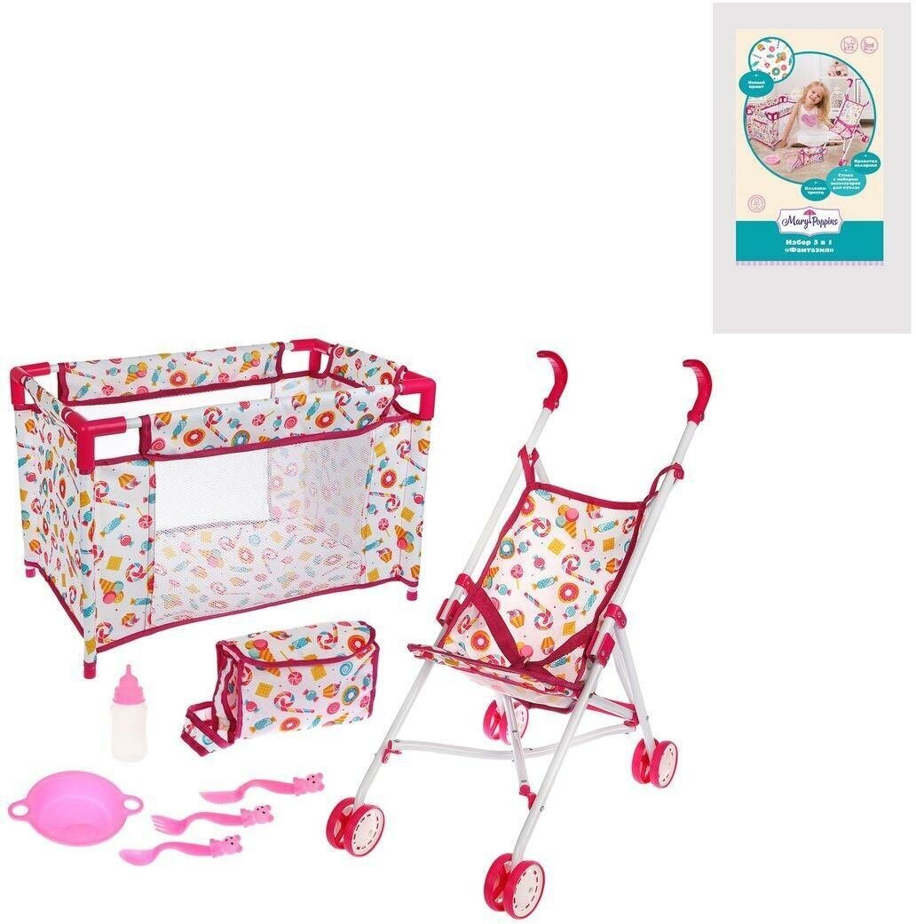 Набор Mary Poppins 3 в 1 Фантазия-2 кроватка коляска-трость и аксессуары для куклы 67327
