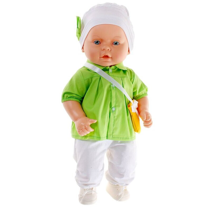 Влада Весна 7 - кукла из серии «Малыши и малышки». Эта кукла очень похожа на настоящего ребенка, с милым личиком, детскими припухлостями, ее так и хочется взять на ручки и позаботиться о ней. Спокойное, приятное выражение лица способствует эмоциональному развитию ребенка. В комплект одежды входит: яркое платьице с кармашком в виде сумочки, шапочка с бантом, ползунки и туфельки.
