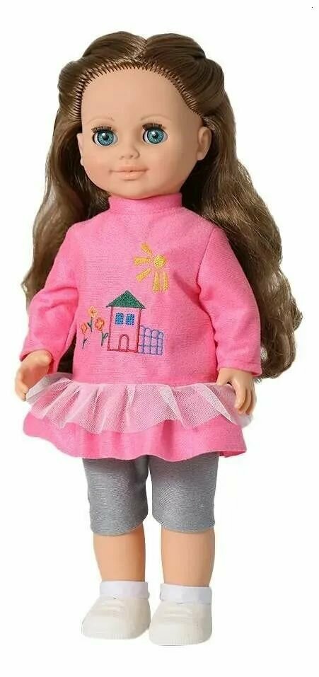 Куклы от кировской фабрики "Весна" - отличный подарок для вашей девочки! Это интерактивные куклы, которые умеют ходить и говорят несколько фраз, одетые в сезонную одежду или национальные костюмы. Имеют густые блестящие волосы и большие красивые глаза. Анна 19 одета в розовую тунику-бадлон с вышивкой "домик" и двойной баской, серые бриджи и белые сандалии с носочками. У куколки длинные волосы, ей можно заплетать косички или делать разные прически.