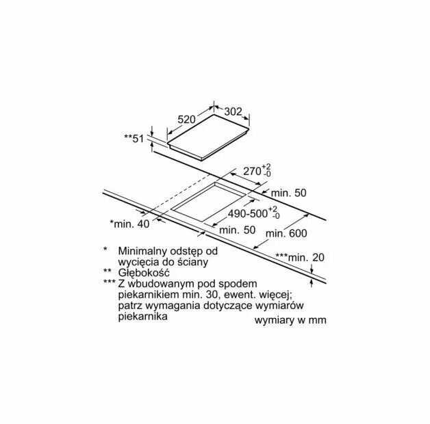 | Описание конфорок | Конфорка с изменяемой площадью нагрева, состоящая из двух сегментов 200 х 210 мм Мощность при использовании верхнего или нижнего сегмента: 2,2 3,7 кВт (в режиме Boost) Размер двух объединенных сегментов составляет 400 х 210 мм, а мощность - 3,3 3,7 кВт (в режиме Boost) |