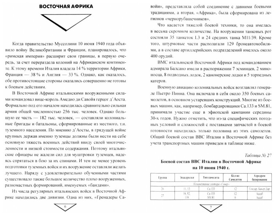 Это сплошной текст, идущий без какого-либо деления на главы или разделы сплошной колбасой. Идет бесконечное описание боев – интересно, но читать это несколько утомительно. В книге много таблиц, но в первой части в самом начале возникает таблица под №27, как если бы весь предыдущий текст с предшествующими 26 таблицами был обрезан. К тому же это один фактический материал – никакого анализа и сопоставления (планы сторон, расстановка сил, причины поражения/успехов, итоги, сравнение с другими ТВД). Правда, воздушные сражения вписаны в общую картину военных действий в Африке.