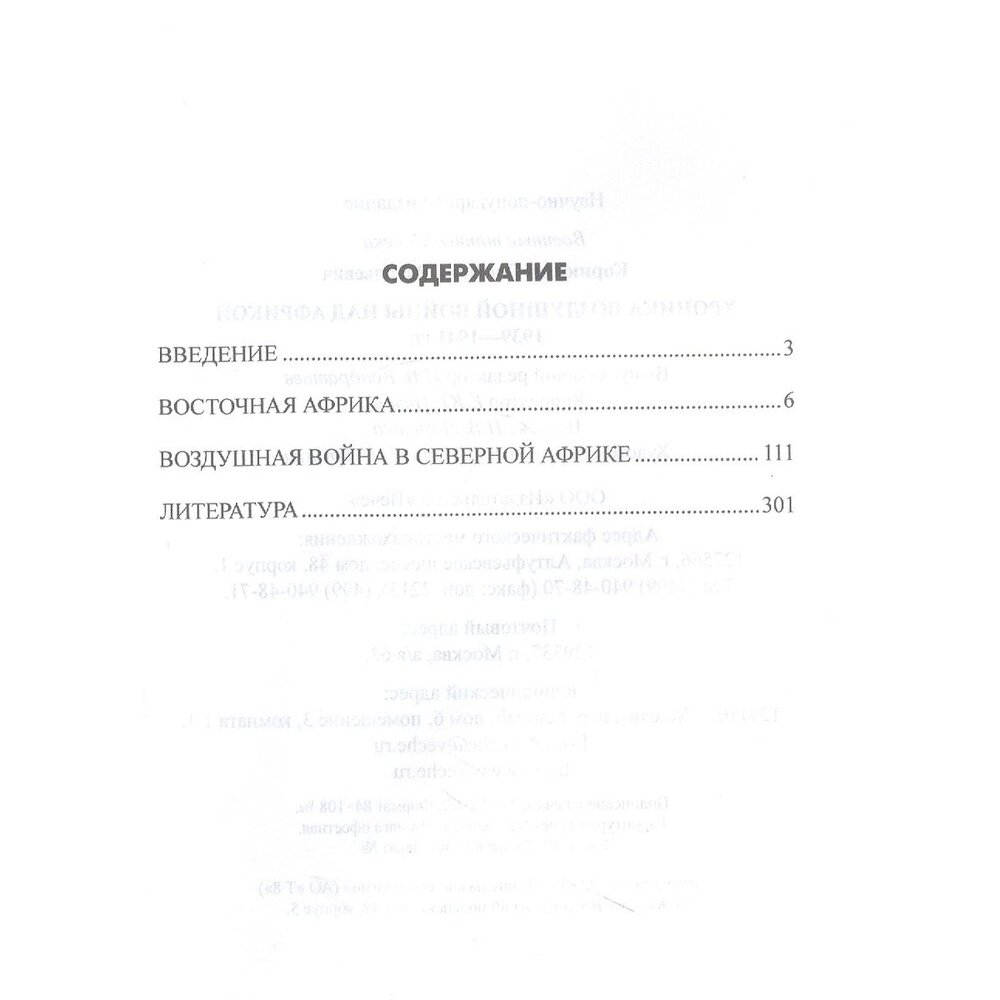 Работа состоит из введения на две страницы и двух частей: воздушные бои в Восточной Африке на 105 стр. и воздушные бои в Северной Африке на 200 стр.