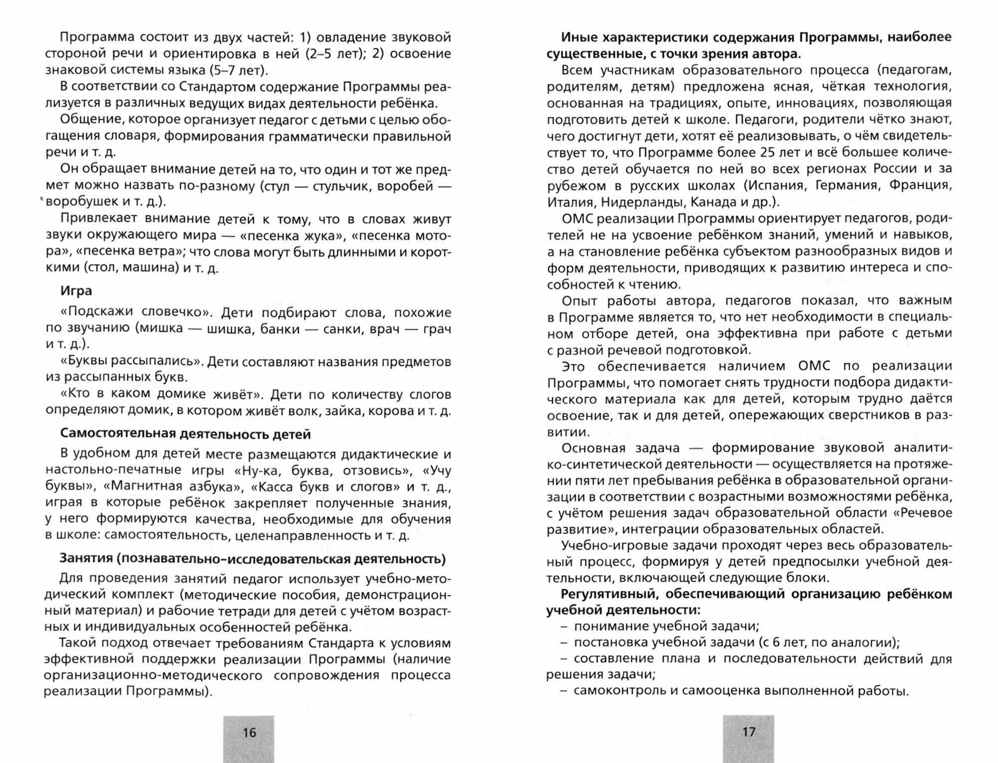 В ней определены содержание, объем, условия реализации и планируемые результаты освоения программы "От звука к букве. Формированию звуковой аналитико-синтетической активности как предпосылки обучения грамоте детей 2-7 лет (образовательная область "Речевое развитие").