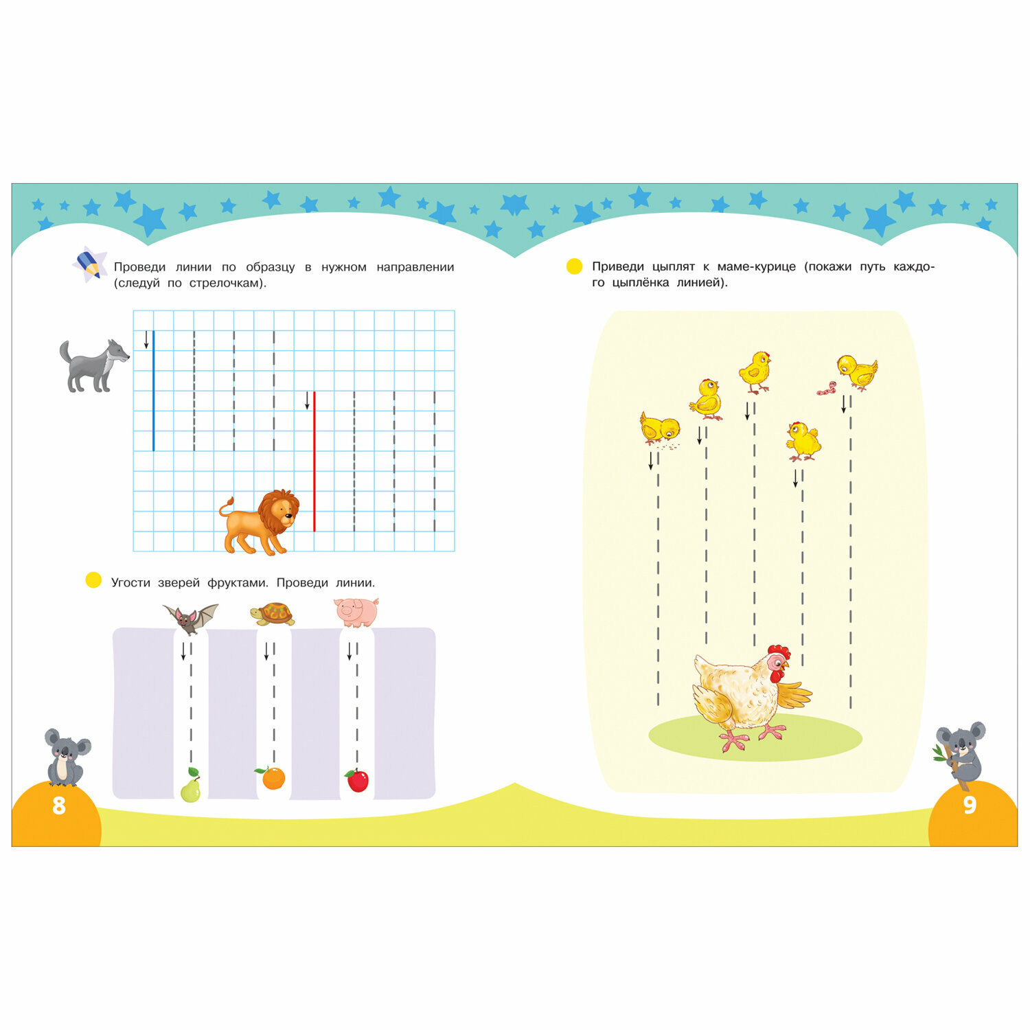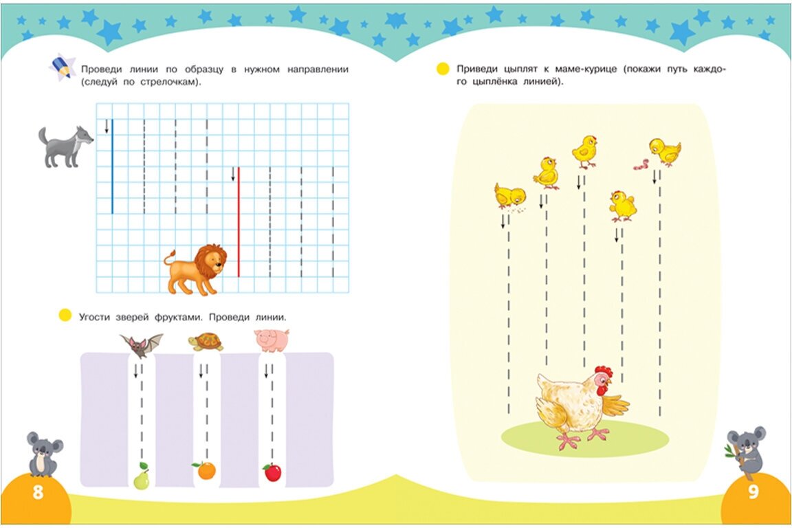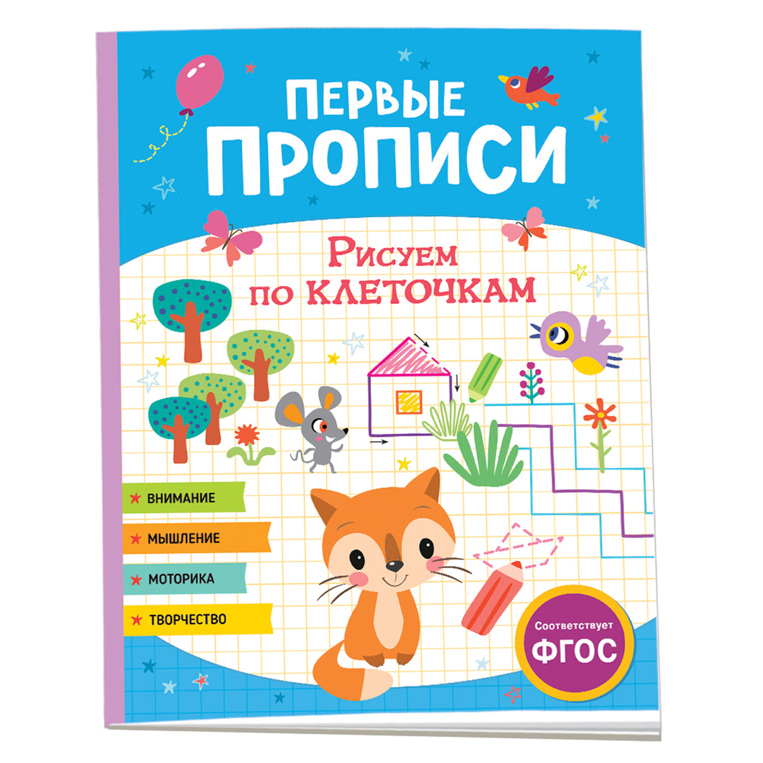 С этой яркой тетрадкой из серии «Первые прописи» ваш дошкольник научится РИСОВАТЬ ЛИНИИ ПО КЛЕТОЧКАМ в разных направлениях, выполнит творческие графические задания и подготовит руку к письму. Также ребёнок будет рисовать узоры из фигур и обводить картинки по контуру. Занимаясь по этой тетрадке, ребёнок тренирует МЕЛКУЮ МОТОРИКУ, развивает ПРОСТРАНСТВЕННОЕ и ЛОГИЧЕСКОЕ МЫШЛЕНИЕ, ПАМЯТЬ, КОНЦЕНТРАЦИЮ ВНИМАНИЯ и ТВОРЧЕСКИЕ СПОСОБНОСТИ.