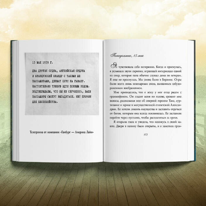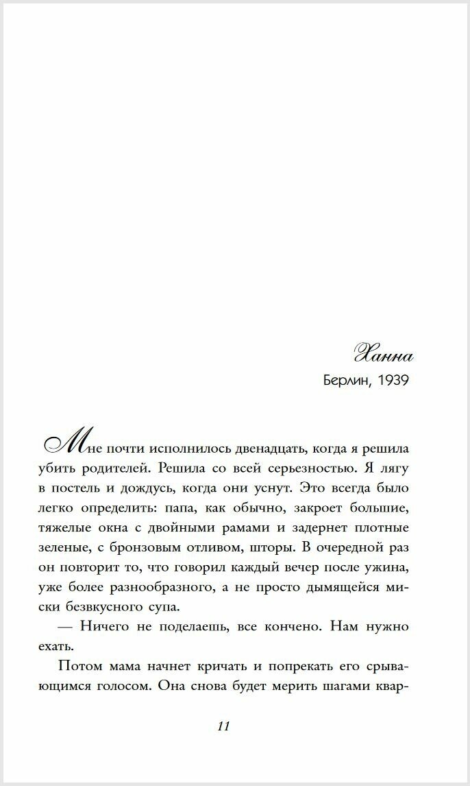 Вас ждет удивительный рассказ об одном из самых трагичных событий Второй мировой войны - о путешествии лайнера с еврейскими беженцами Сент-Луис, известного в истории как "Плавание обреченными". Автор выстраивает нарратив, перемежая повествования между двумя временными отрезками. Девочка Анна в настоящем. Девушка Ханна в прошлом. Их связывают тайны семейной истории, узы родства и роль изгнанниц в собственной судьбе. Ханна - немецкая еврейка, бегущая от нацистской власти в 1939 году. Анна ненавидима всеми вокруг, но сама не знает почему.