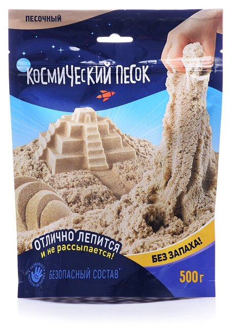 Космический песок мягкий, воздушный и невероятно пластичный. Космический песок никогда не высыхает, не окрашивает руки, не липнет к рукам и абсолютно безопасен. Песок отлично развивает мелкую моторику и увлекает ребенка на длительное время. Подарите своему ребенку возможность развивать свои творческие способности! *Космический песок - первый кинетический песок произведенный в России!