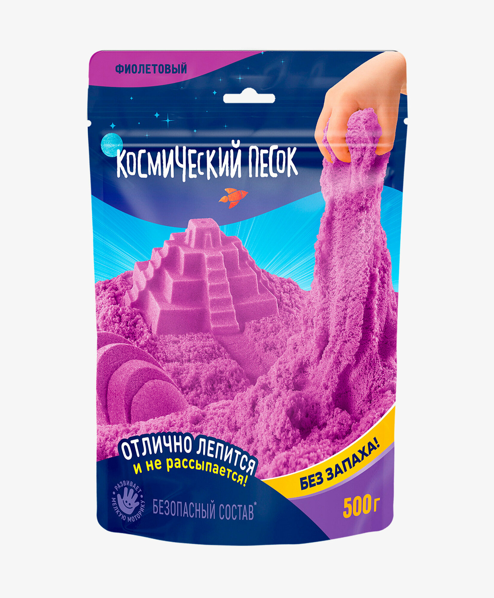 Космический песок мягкий, воздушный и невероятно пластичный. Космический песок никогда не высыхает, не окрашивает руки, не липнет к рукам и абсолютно безопасен. Песок отлично развивает мелкую моторику и увлекает ребенка на длительное время. Подарите своему ребенку возможность развивать свои творческие способности! *Космический песок - первый кинетический песок произведенный в России!