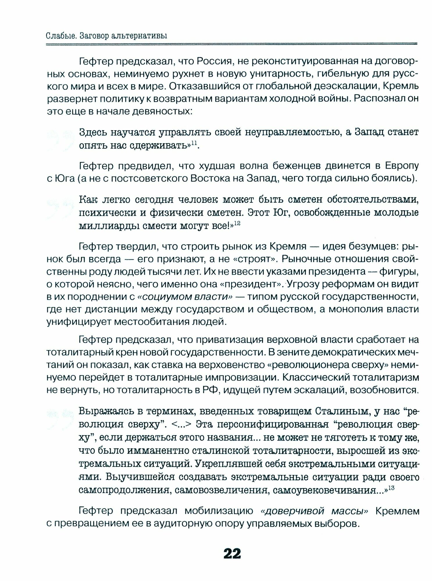 "Слабые" - книга-досье об интеллектуальных сетях девяностых годов ( #Иные #Русский Проект #Фонд эффективной политики), связанных учением Михаила Гефтера об альтернативе как двигателе истории. Заговор удался, но альтернатива выскользнула из рук. Экспериментируя с историей и политикой, слабые люди проложили путь слабой безальтернативной власти РФ. Гефтер хотел помешать - и не успел. Технология власти победила ценой катастрофы цели.