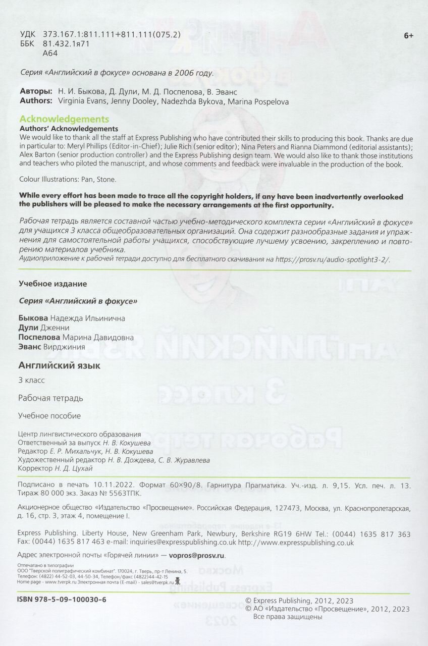 Английский язык. 3 класс. Рабочая тетрадь. ФГОС (Быкова Надежда Ильинична; Поспелова Марина Давидовна; Эванс Вирджиния; Дули Дженни); Просвещение, 2023