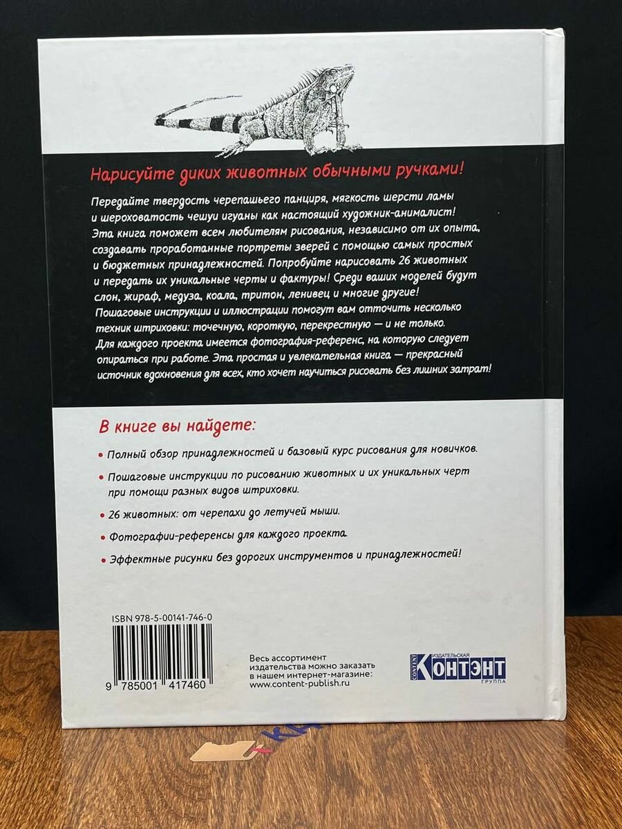 Нарисуйте диких животных обычными ручками! Передайте твердость черепашьего панциря, мягкость шерсти ламы и шероховатость чешуи игуаны как настоящий художник-анималист! Эта книга поможет всем любителям рисования, независимо от их опыта, создавать проработанные портреты зверей с помощью самых простых и бюджетных принадлежностей. Попробуйте нарисовать 26 животных и передать их уникальные черты и фактуры! Среди ваших моделей будут слон, жираф, медуза, коала, тритон, ленивец и многие другие! Пошаговые инструкции и иллюстрации помогут вам отточить несколько техник штриховки: точечную, короткую, перекрестную - и не только. Для каждого проекта имеется фотография-референс, на которую следует опираться при работе. Эта простая и увлекательная книга -прекрасный источник вдохновения для всех, кто хочет научиться рисовать без лишних затрат! В книге вы найдете: