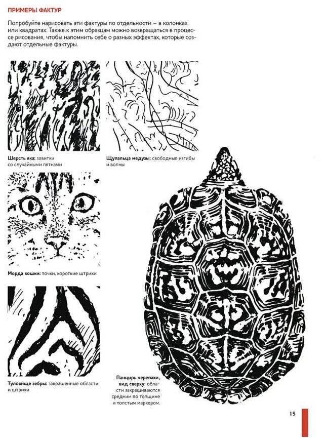• Пошаговые инструкции по рисованию животных и их уникальных черт при помощи разных видов штриховки.