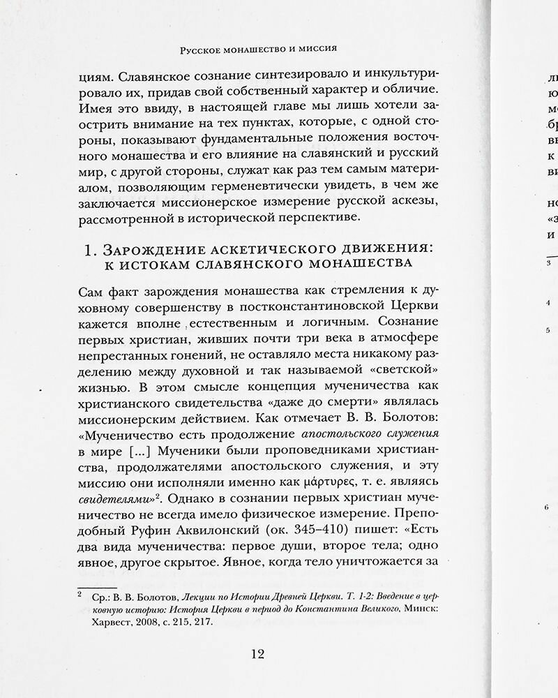 В тысячелетней истории русского христианства культурная и цивилизационная роль монашества очевидна и неоспорима. Однако в отечественной богословско-исторической мысли утвердилось восприятие монашеской жизни, прежде всего, как созерцательной, далекой от миссионерства. Представления о "миссионерской неактуальности" аскетической жизни распространены в церковных кругах и в самом монашестве. Именно это и побудило автора предпринять данное исследование, в котором хорошо известные исторические факты рассматриваются с принципиально иной, миссиологической точки зрения, в результате чего предстают в новом свете. Основополагающий тезис автора заключается в том, что путь монаха к духовному совершенству, к обожению имеет миссионерское значение, и только исходя из этого можно по-настоящему понять миссию монашества.
