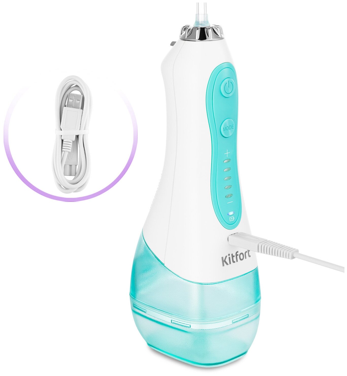 Портативный ирригатор Kitfort КТ-2920 - это простой и эффективный прибор для чистки полости рта. Тонкая и сильная струя воды не только вымывает остатки еды, налёт из межзубного пространства и пародонтальных карманов, но и массажирует дёсны. У прибора 5 режимов работы, вы можете выбрать от самого слабого до самого сильного. При работе на корпусе ирригатора светится индикатор выбранного режима. Ирригатор имеет автоматическое отключение после 2 минут использования. В комплекте есть насадки: две классические струйные насадки, насадка для удаления зубного камня и налёта из-под линии десны, насадка с щёточкой для удаления налёта, насадка для чистки языка. У резервуара для воды, ёмкостью 300 мл, есть специальное отверстие для залива воды, которое закрывается крышкой с уплотнительным кольцом. Резервуар полностью съёмный, что очень удобно при мытье прибора. Заряжать ирригатор с помощью USB-шнура можно от компьютера, через блок питания или через внешний аккумулятор, если вы в дороге. Время полной зарядки составляет около 3-5 часов. Ирригатор лёгкий и компактный. Его удобно брать с собой куда угодно. Прибор можно хранить и перевозить в специальной сумочке на замке, которая идёт в комплекте.