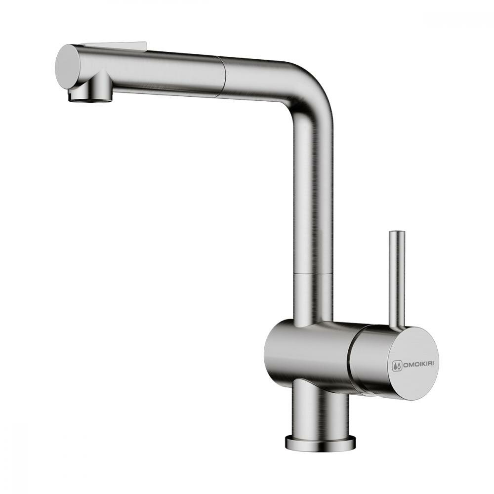 Смеситель для кухни Omoikiri Tanigawa-SB-BN 4994457 сталь. Практичный однорычажный смеситель выполнен в современном стиле и снабжен высоким поворотным изливом и вытяжным шлангом. Вытяжной шланг до 800 мм. Гарантия на покрытие - 2 года. Высококачественная латунь без содержания свинца сохранит воду чистой и здоровой. Полный комплект соединений для подключения, инструкция, гарантийный талон