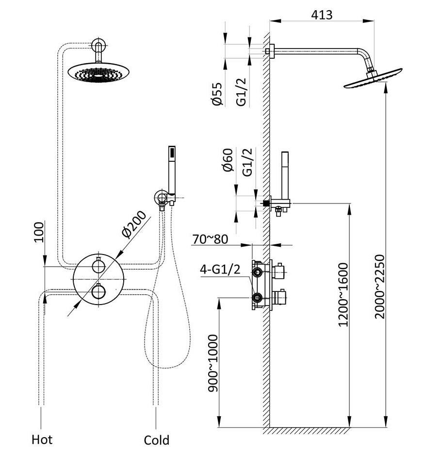 | ВКоробке | Верхний душ - 1 шт. Лейка - 1 шт. Шланг - 1 шт. Шланговое подключение с держателем для душа - 1 шт. Термостат - 1 шт. Внутренняя монтажная часть - 1 шт. Инструкция - 1 шт. |