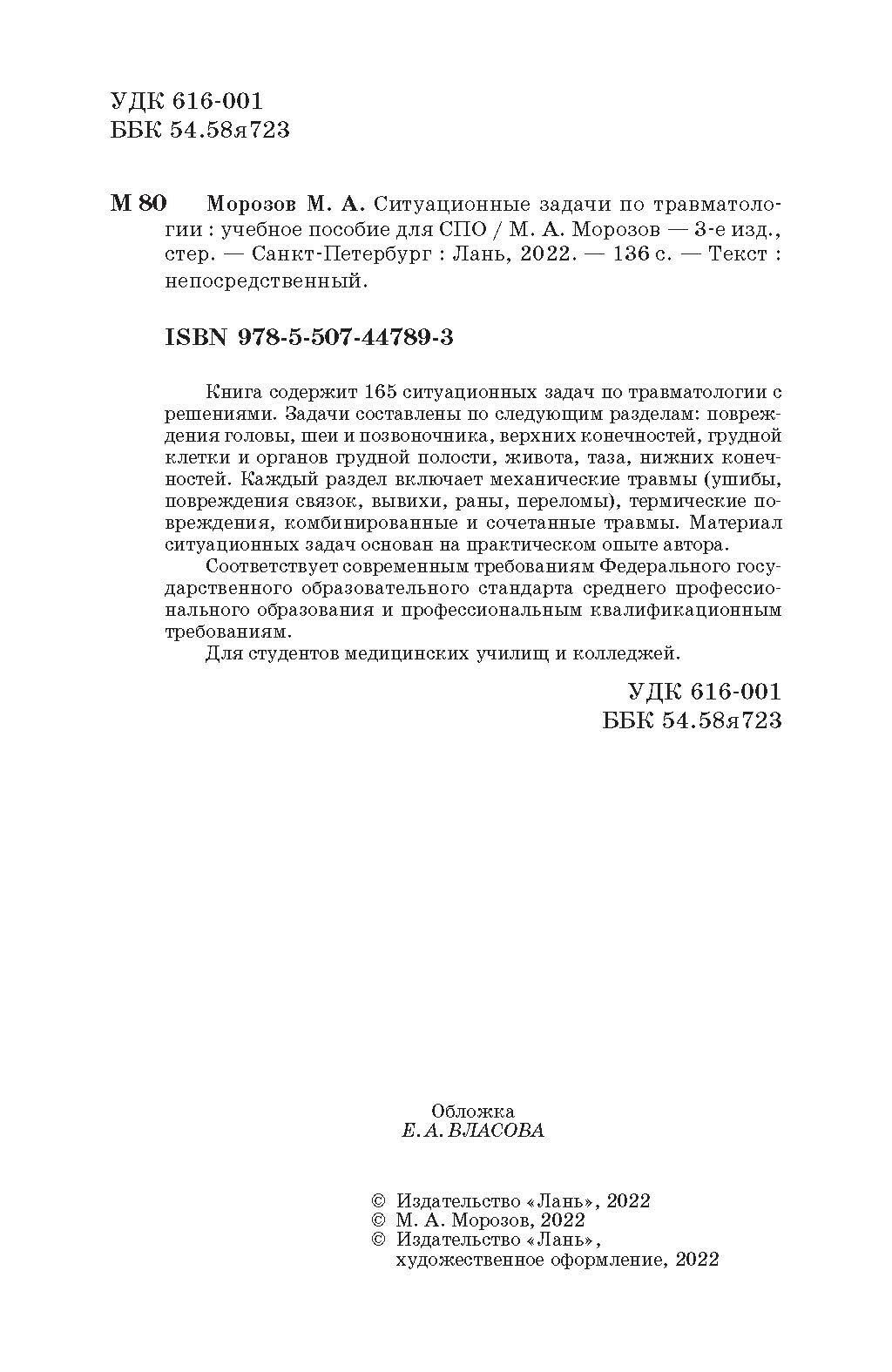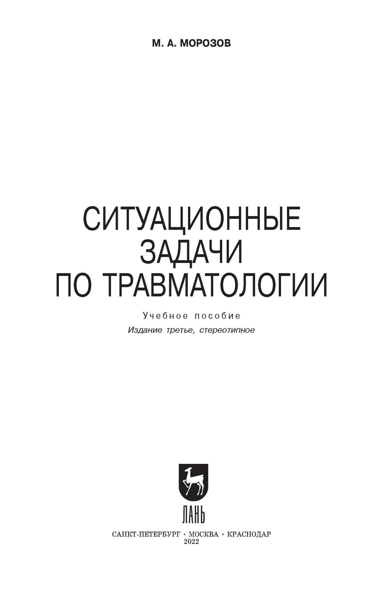 Ситуационные задачи по травматологии. Учебное пособие для СПО (М. А. Морозов); Издательство ЛАНЬ, 2022
