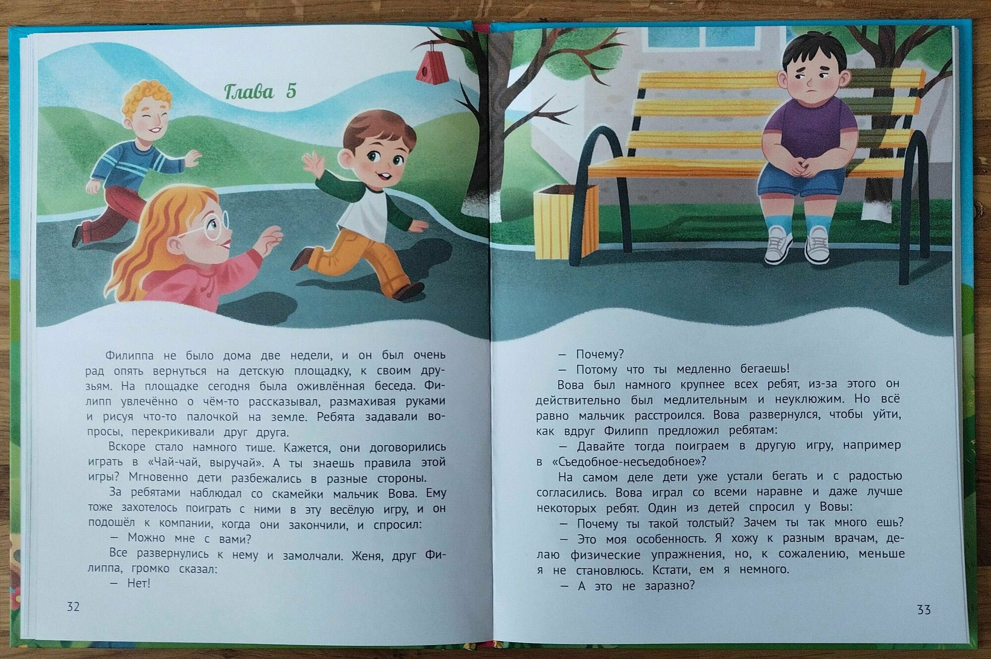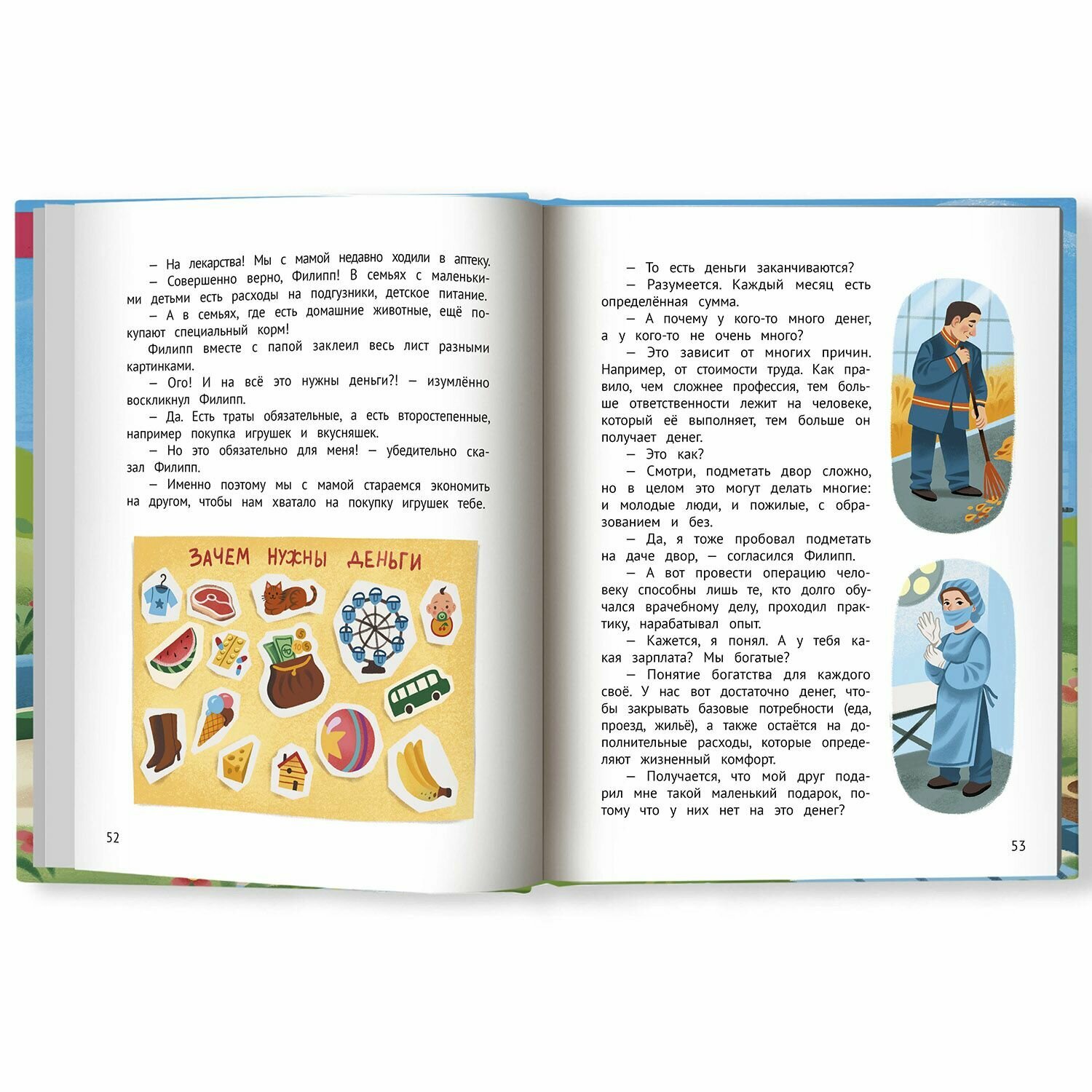 Книга очень понравилась детям 5 и 3х лет (младший пока просто слушает), а вот со старшей дочерью можно составлять полноценные беседы. Этому способствуют замечательные, яркие иллюстрации практически на каждой странице, простой для понимания текст. А также вынесенные после каждой главы вопросы для получения обратной связи.